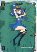 In Lostorage conflated WIXOSS, Milulun's LRIG appearance is now older and more mature. She now has long blue hair wrapped up into a side bun and blue eyes.Milulun also wears a huge poofy dark blue, light blue and black dress adorned with multiple yellow stars. She also wears navy blue cat ears in her hair.